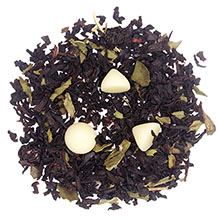 Ingredients: black tea, mini white chocolate chips, candy cane pieces, peppermint leaves, natural candy cane flavor & natural vanilla flavor