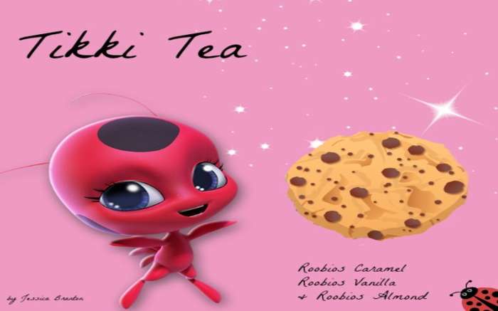 Sweet Tikki deserves a tea that's as sweet as the cookies she loves. Thus, I have created such a tea! I blend of three different roobios teas to contribute to the cookie element, this tea also has chocolate chips so that she is connected to Ladybug and gets the final similarity between her beloved chocolate chip cookie.