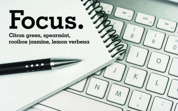 Need to hunker down and write? Try this aromatherapeutic blend of citrus and mint for energy and focus, with a hint of jasmine for stress relief, all in a base of delicious green tea. Butt in chair, hands on keyboard! FOCUS.