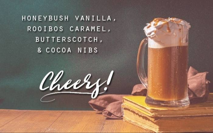 A delicious blend of butterscotch, vanilla, and caravel honeybush and rooibos teas with a smattering of cocoa nibs for a scrumptious, indulgent cuppa. Raise a mug and toast to cold winter nights and butterscotch-sweet dreams!