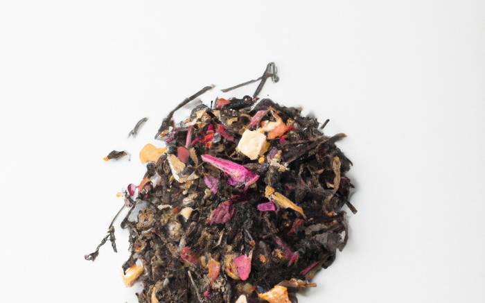 blended with decaf black tea, orange, natural bergamot flavor, blue cornflowers, cocoa nibs, natural raspberry flavor, raspberries, natural chocolate flavor, cocoa butter), chicory, raspberry leaves, cacao, cocoa mass & dark chocolate chips (cane sugar
