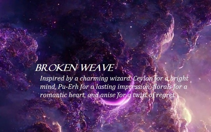 Inspired by a charming wizard. Ceylon for a bright mind, Pur-Erh for a lasting impression, florals for a romantic heart, and anise for a twist of regret.