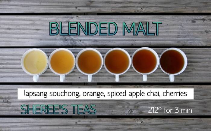 Step into warmth and flavor with Blended Malt. A base of black tea and smoky Lapsang Souchong sets the stage for spices and fruits. Cinnamon mingles with the bite of ginger. Cardamom and cloves add a layer of exotic complexity. Orange offers a refreshing burst, balanced by tart cherries.