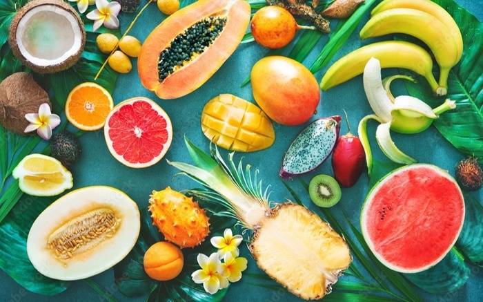 blended with white tea, green tea, pouchong tea, apple pieces, lemon grass, papaya flavor, natural mango flavor, rose petals, natural pineapple flavor, natural coconut flavor, strawberries, mango pieces & marigold flowers