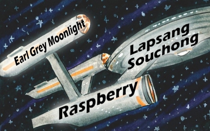 Space..the final frontier. According to a study done in 2009, it tastes of raspberries and rum! Or..the ethyl formate in it does, at least. Have a taste of space with tangy raspberry black tea and creamy earl grey moonlight, with just a touch of smoky lapsang souchong to give it that hint of rum flavor.