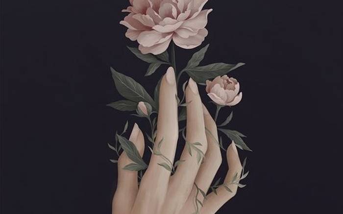 White peony and peach with cornflowers. Delicate, floral, elegant and great for healing.