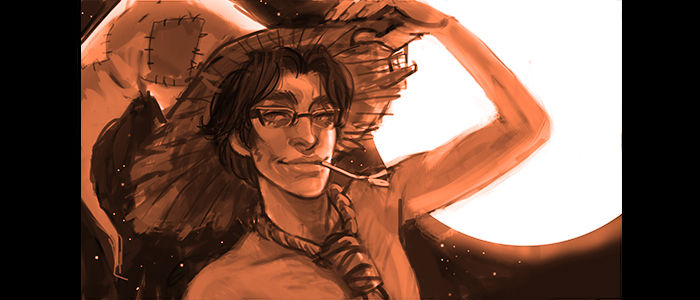 ------Would you like to see his mask?------ [Image specifically drawn for this tea by PolarArts. Check out their other art on Tumblr or Patreon!]